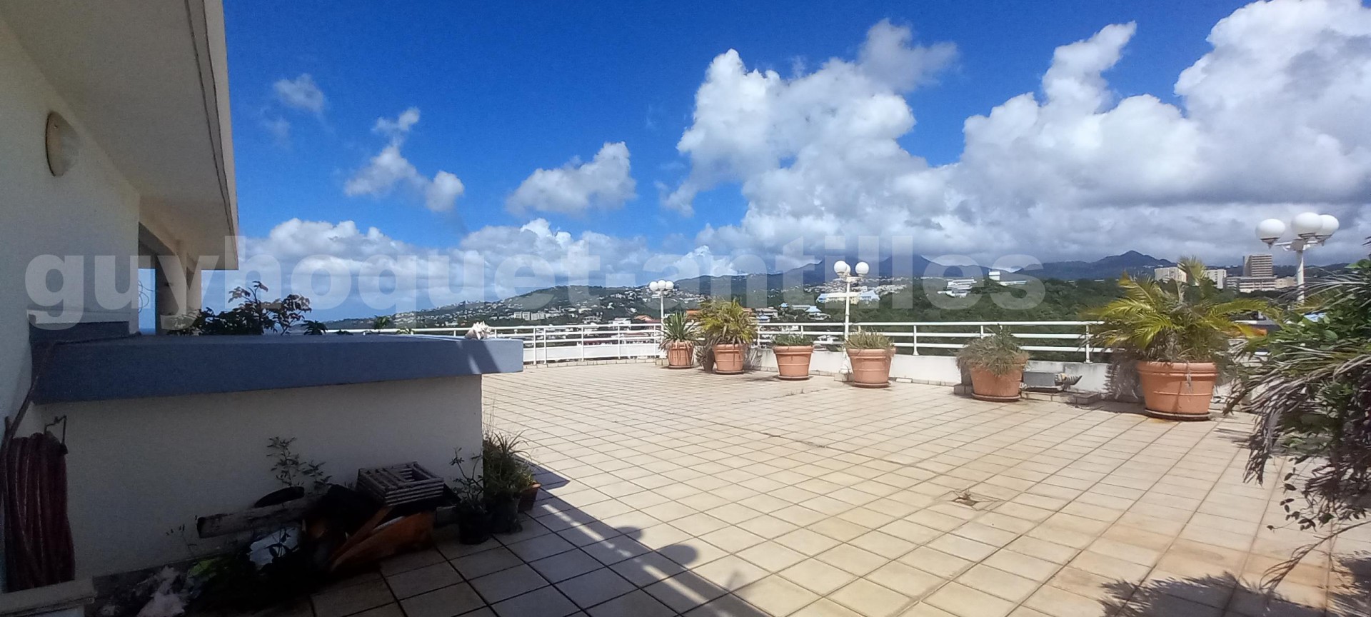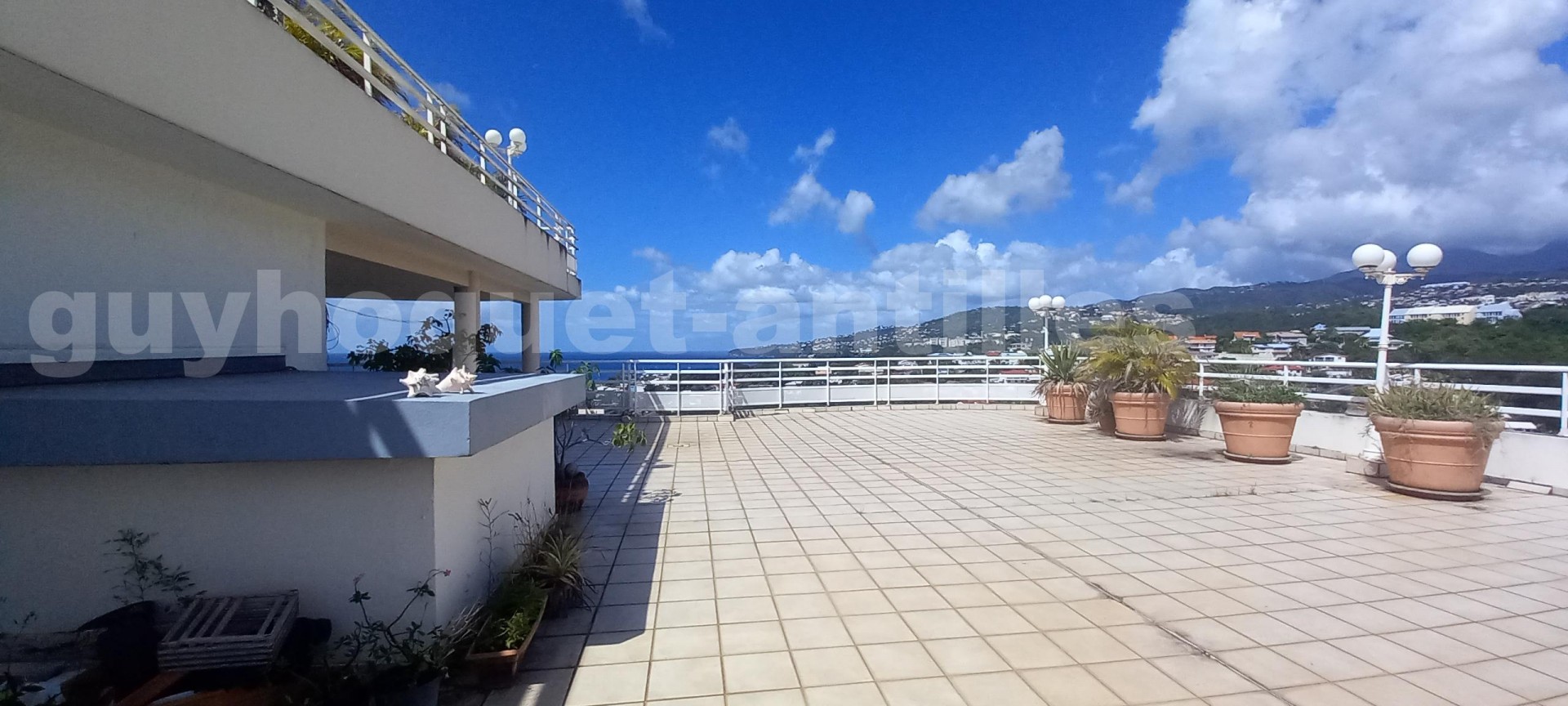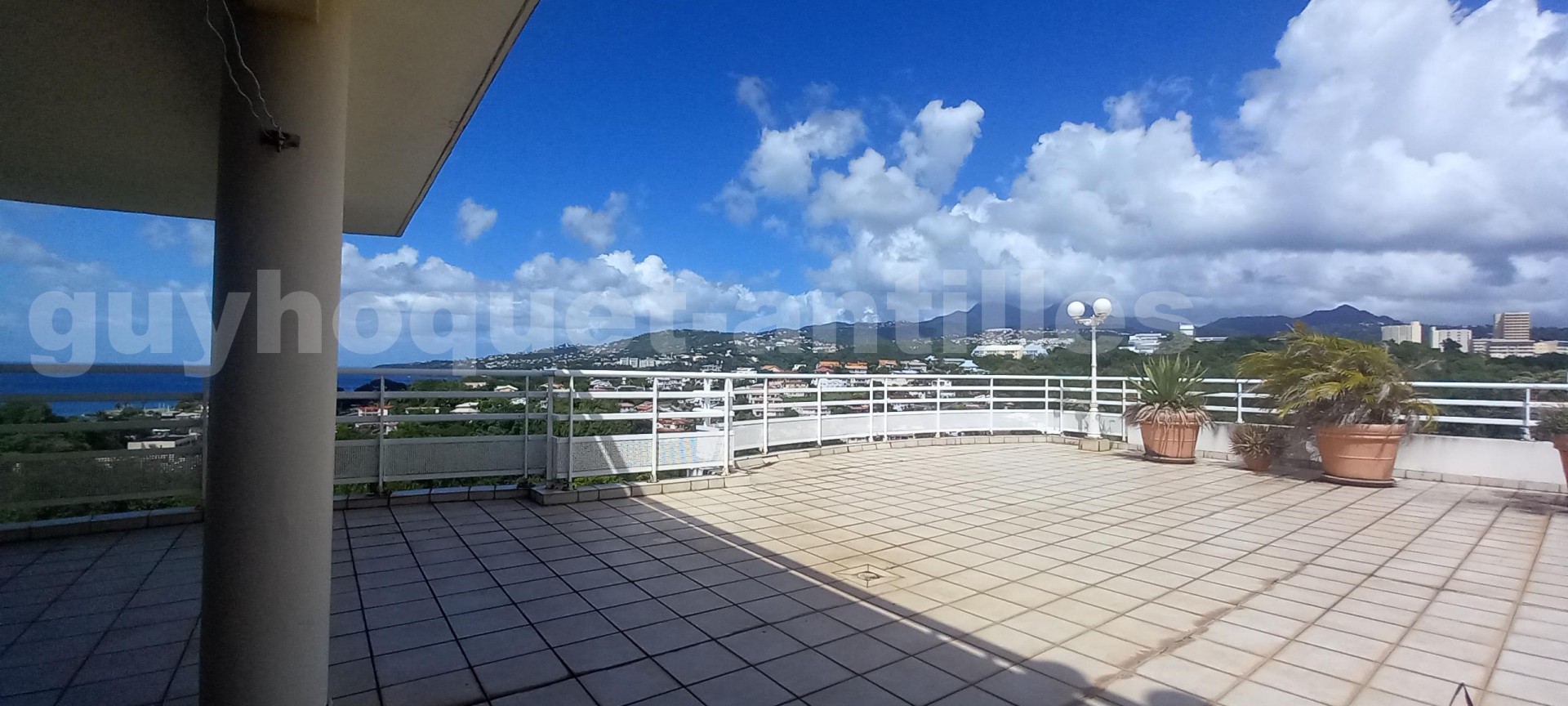 Découvrez ce magnifique condominium situé à Schoelcher, offrant un cadre de vie exceptionnel et une vue panoramique à couper le souffle sur la mer et les reliefs majestueux des Pitons du Carbet.